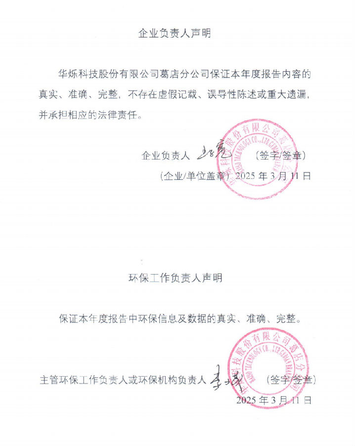 企业名称:华烁科技股份有限公司葛店分公司